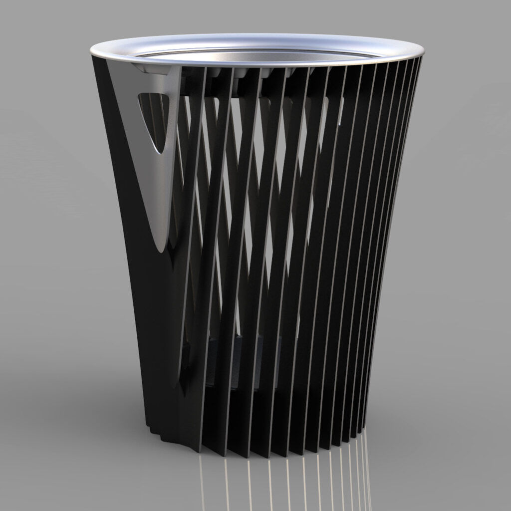 もし、ゴミ箱が美しかったら… 「捨てずに持ち帰ろう」「美しく捨てよう」 と人の気持ちを変えることができるかもしれない。 その思いが根付けば、ごみに対する意識が変わる。 町の風景を美しく彩り、見るだけで気分が上がるようなものを作りたい 「美しいゴミ箱」にはそんな思いが込められています。 美しいゴミの構造を活用した派生バージョン。 ガラストップのテーブルには、コレクション展示可能な面発光のステージを内蔵。 面発光の照明は上下に向けて光を発し、空間を情緒的に演出します。